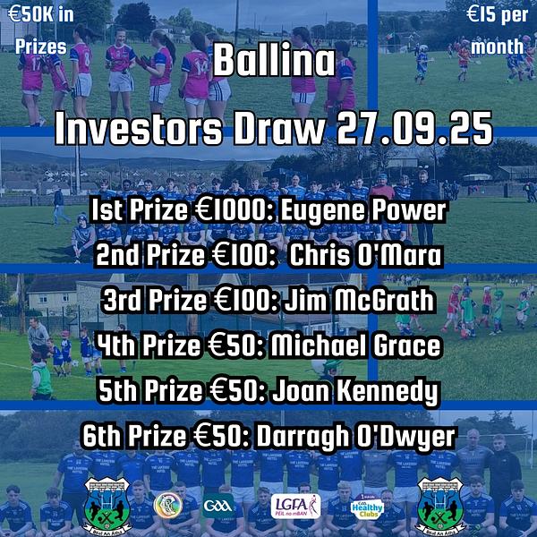 Our 17th Investors Draw took place the 27th of September in the clubgrounds and here are our winners: