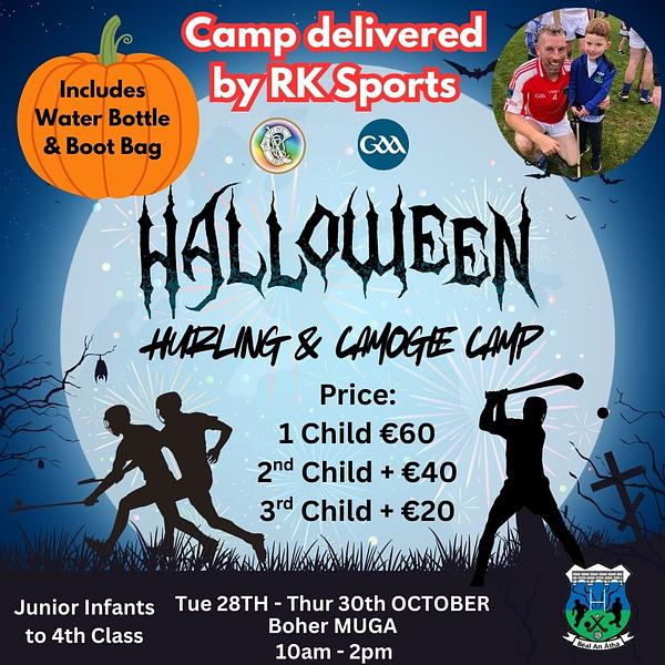 Our Hurling and Camogie camp is taking place over the mid term break from the 28th - 30th of October from 10am - 2pm at the Boher Astro. Rody Kennedy of RK Sports will be running the camp for us and it was a great 3 days last year.